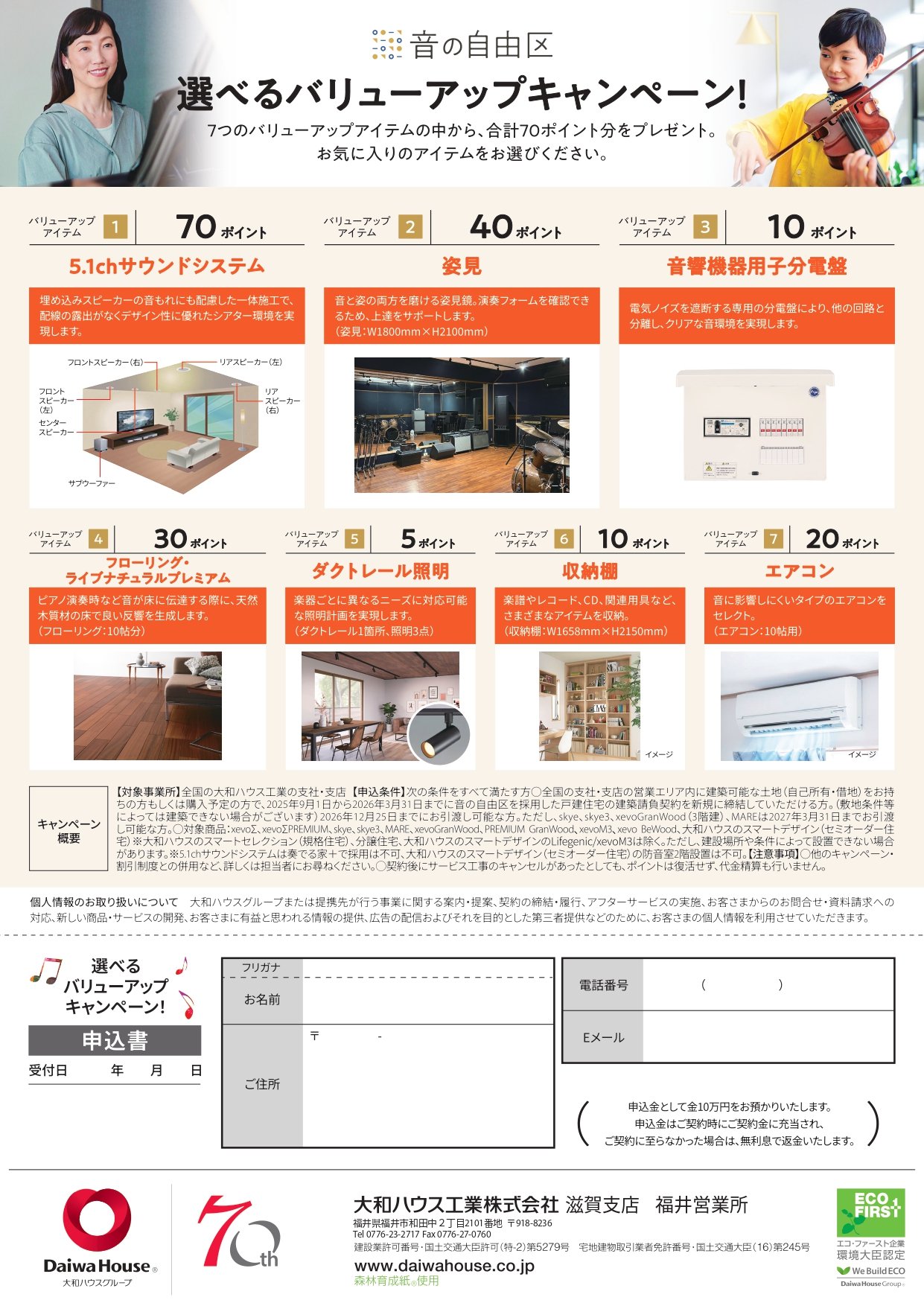 期間中に、音の自由区を採用した注文住宅をご契約の方に