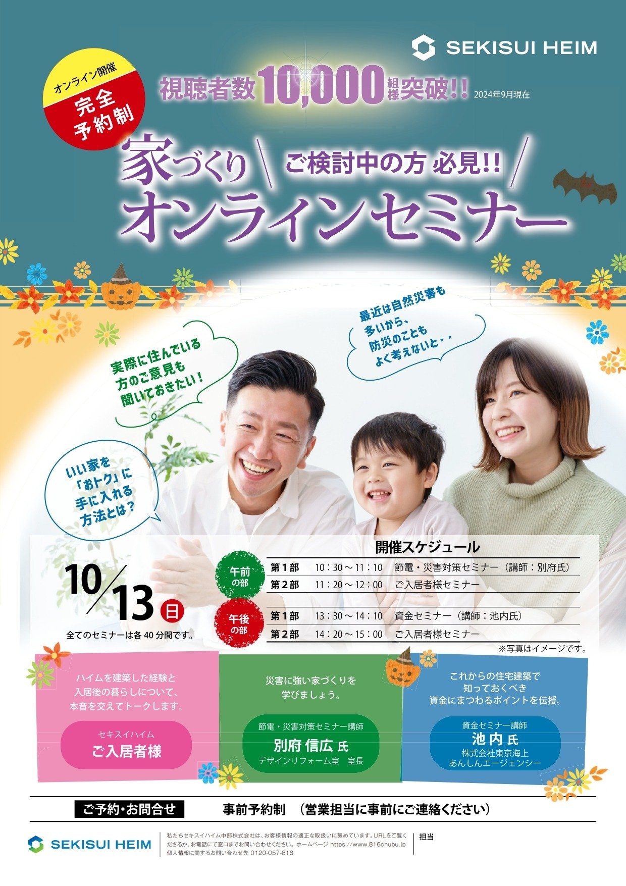【10月13日】お得な情報盛り沢山!家づくりオンラインセミナー開催!