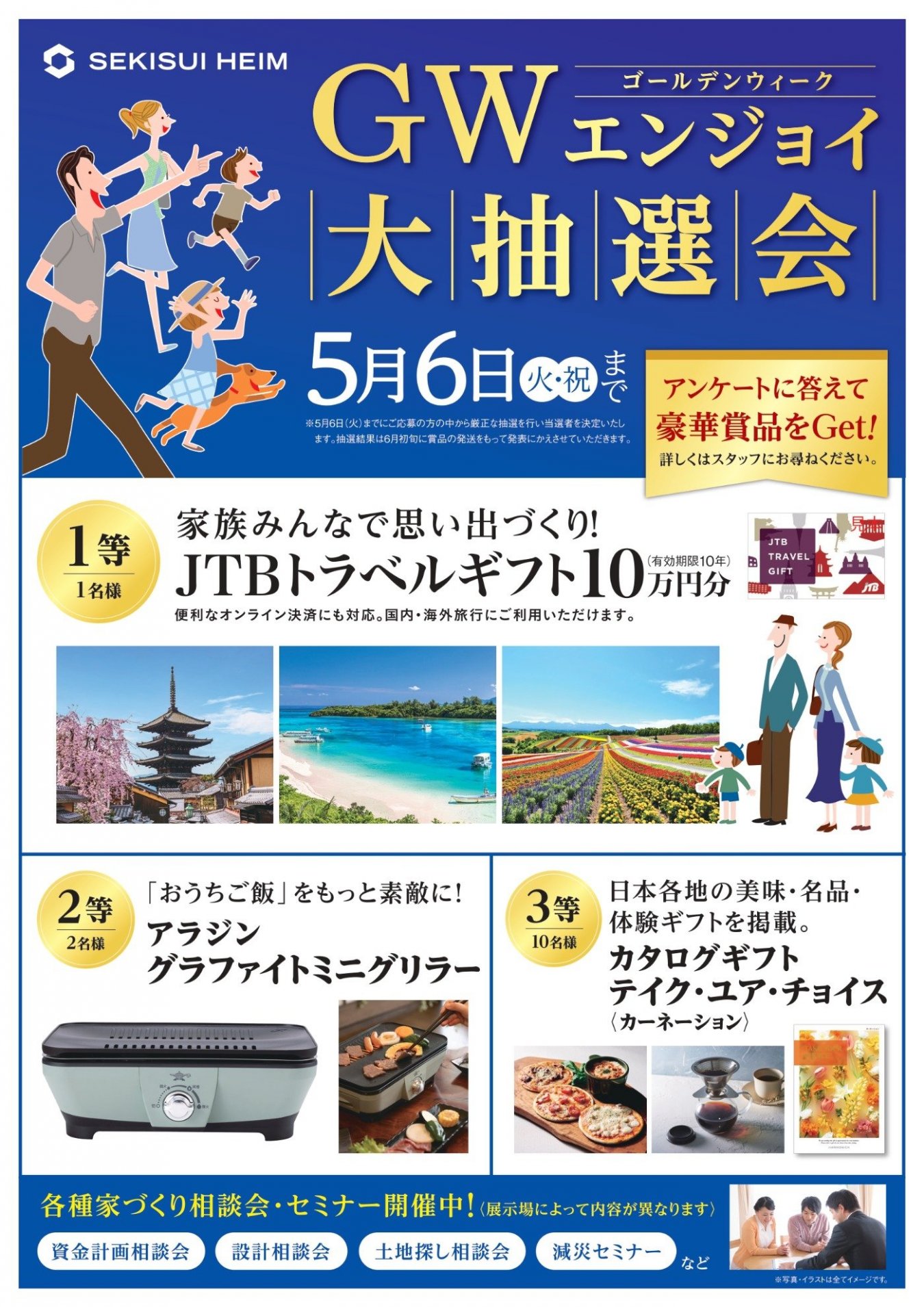 明日より、セキスイハイム展示場にて豪華賞品抽選会を開催致します!