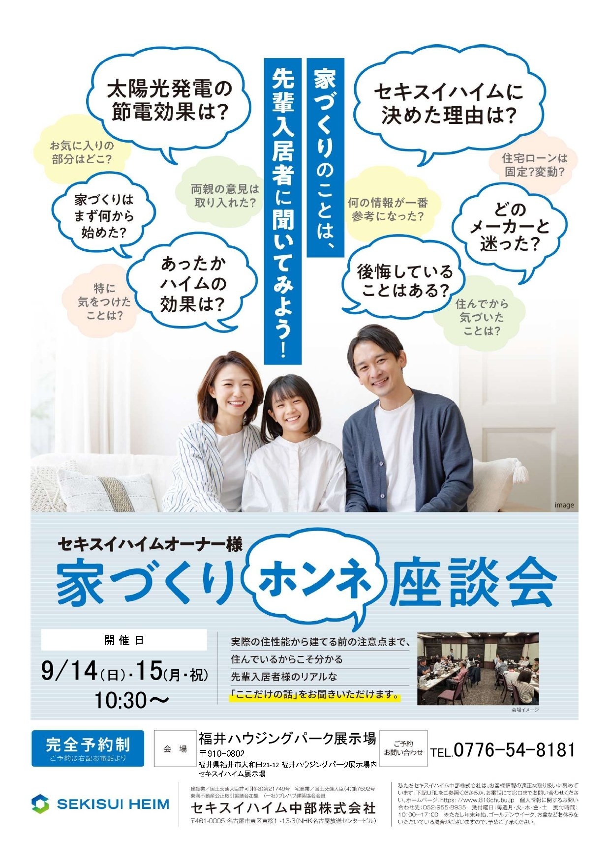 【9月14日(日)・15日(月・祝)】『オーナー様家づくりホンネ座談会』 開催!!
