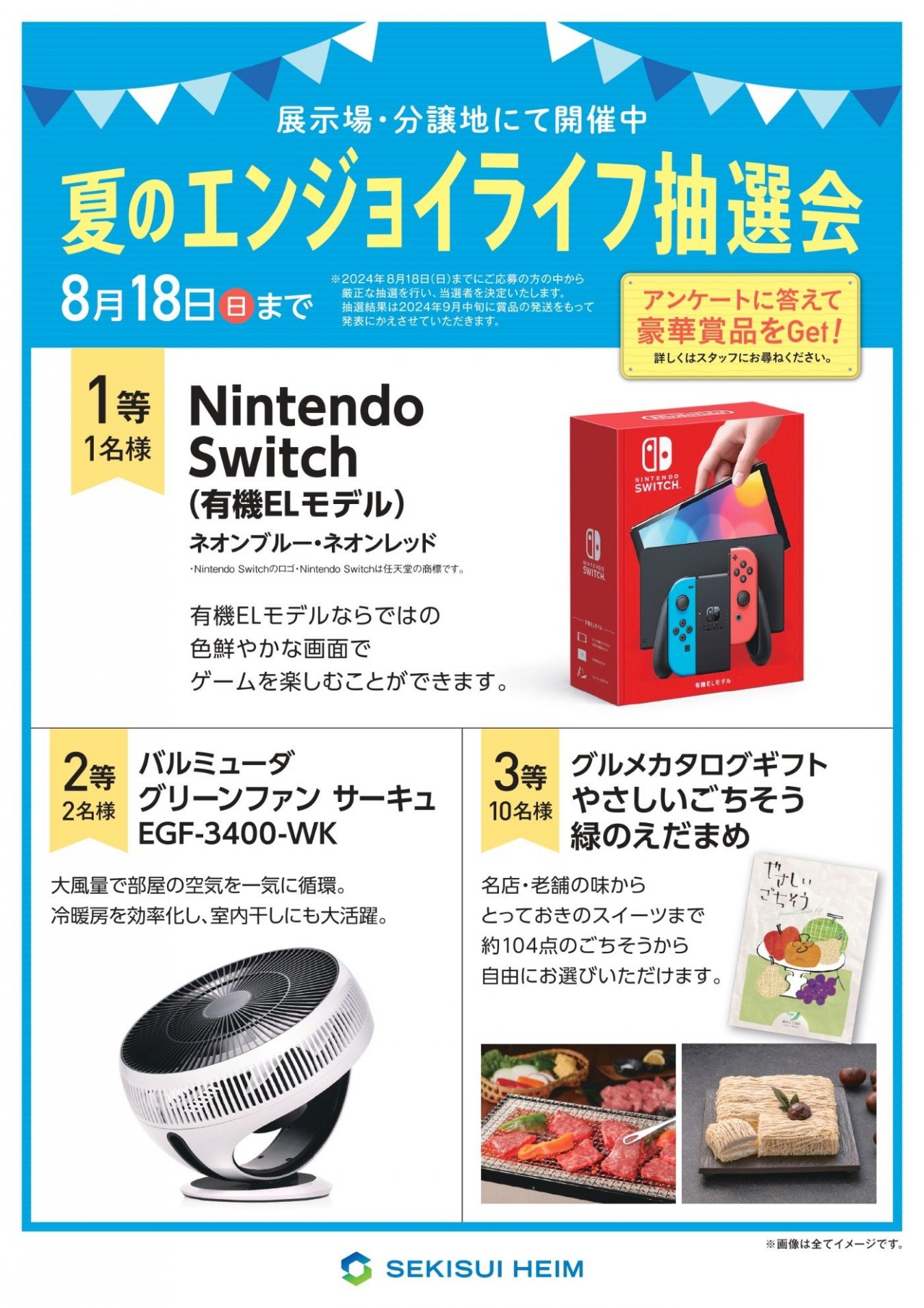 本日より、セキスイハイム展示場にて豪華賞品抽選会を開催致します!