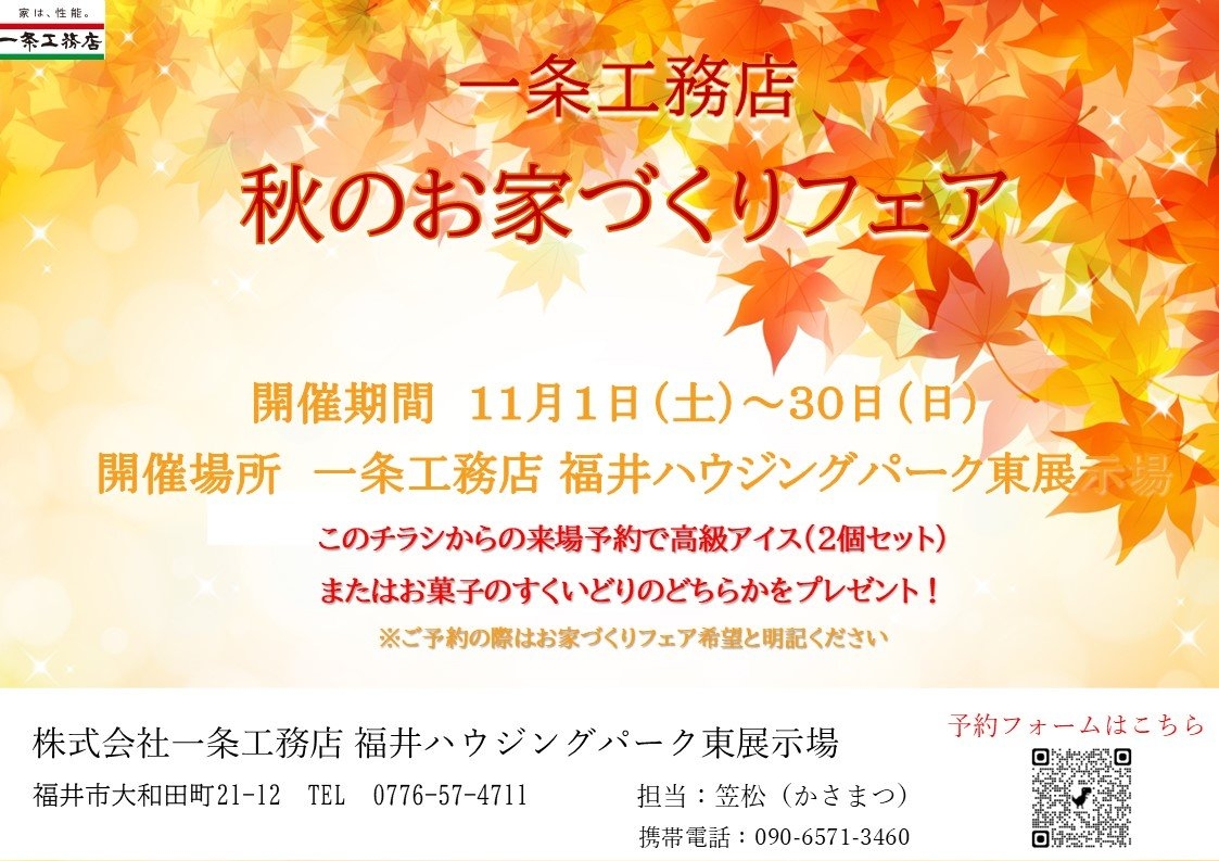 一条工務店では秋のお家づくりフェアを開催いたします!