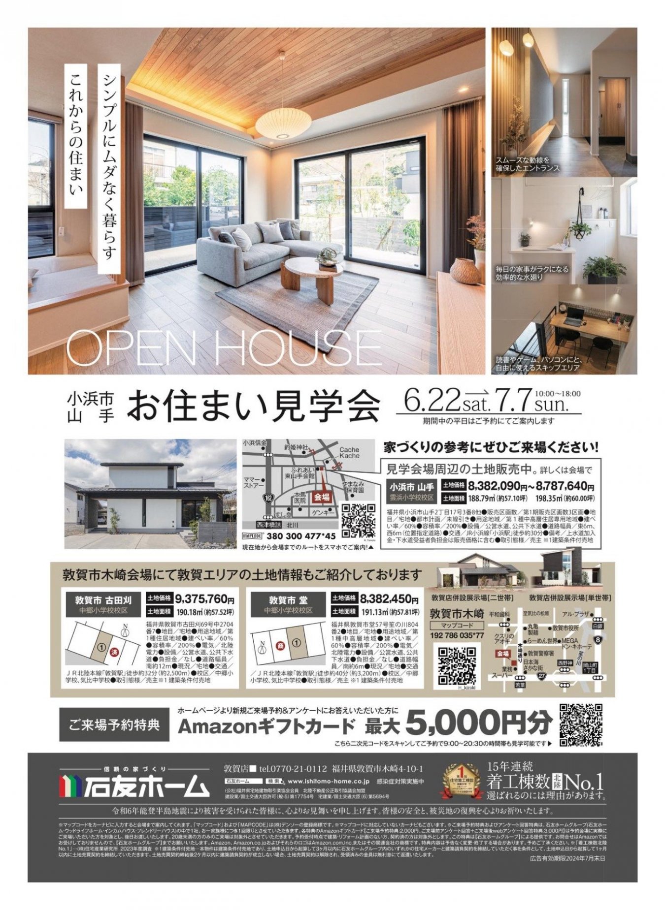 石友ホームのホームページから新規ご来場予約&来場前アンケート&来場後Webアンケートにお答えいただいた方には最大5,000円分のAmazonギフトカードをプレゼント中!