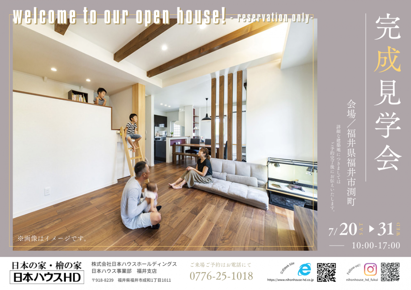 施主様のご厚意により、福井県福井市にて完成見学会を開催させていただきます。