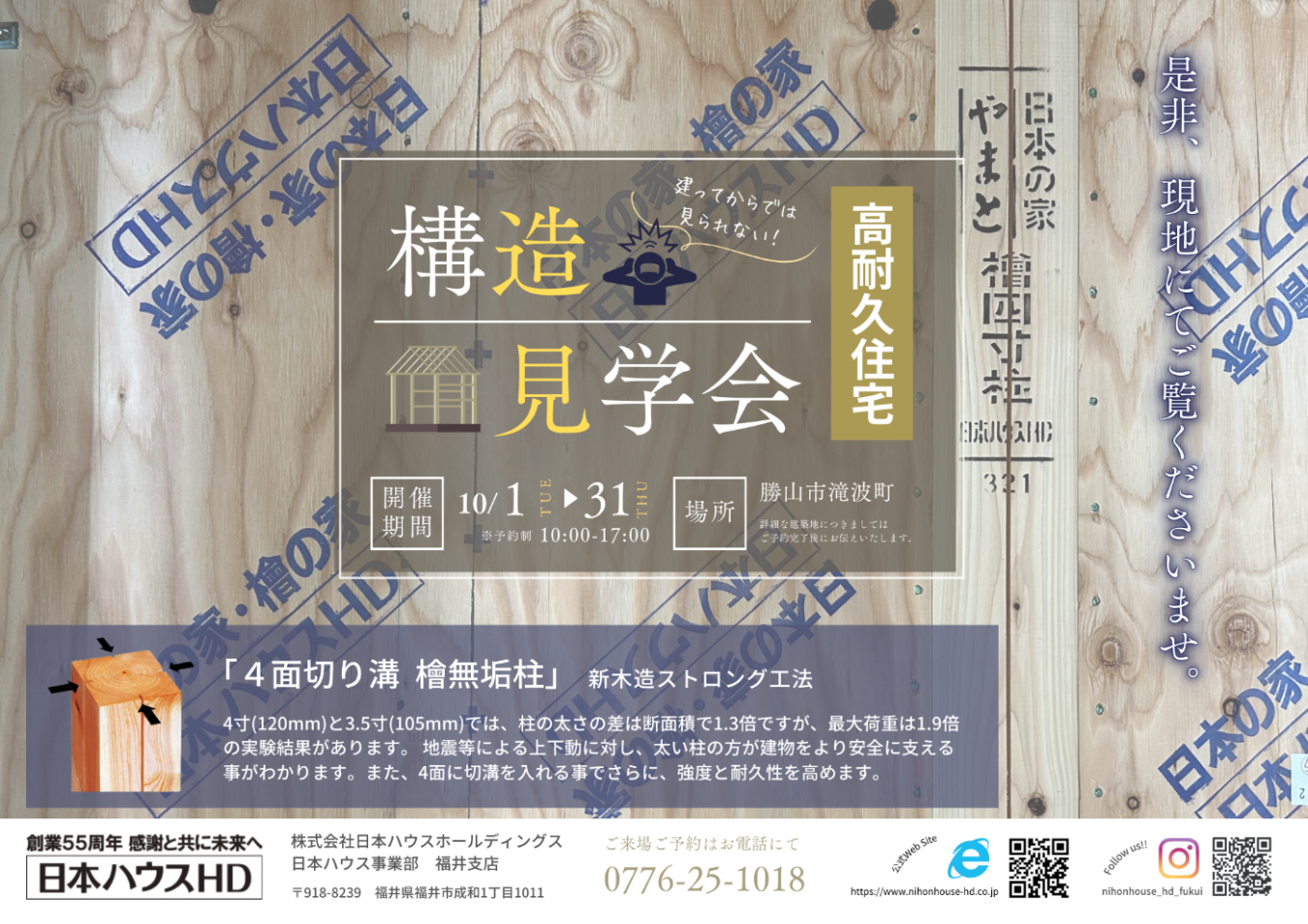 施主様のご厚意により、勝山市にて構造見学会を開催させていただきます。