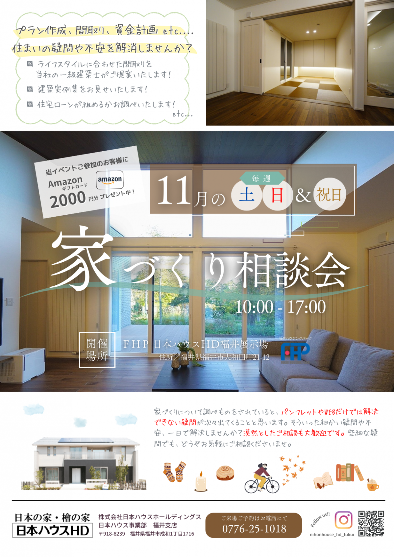 11月の土日&祝日は家づくり相談会開催⭐︎