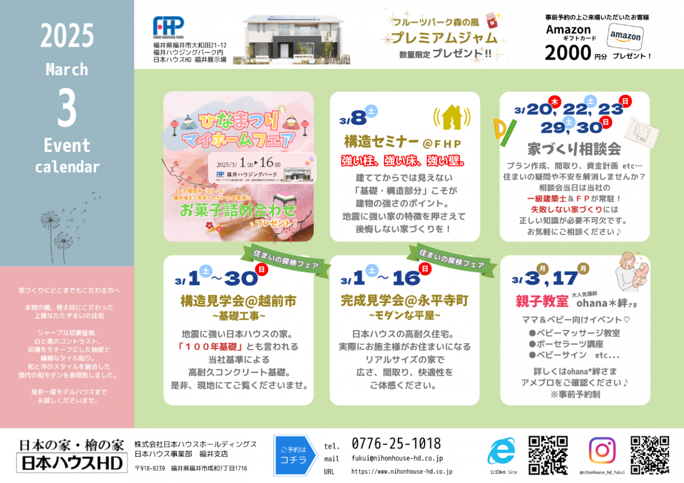 また3月は、お客様のご厚意により、永平寺町にて完成見学会を開催させていただきます。
