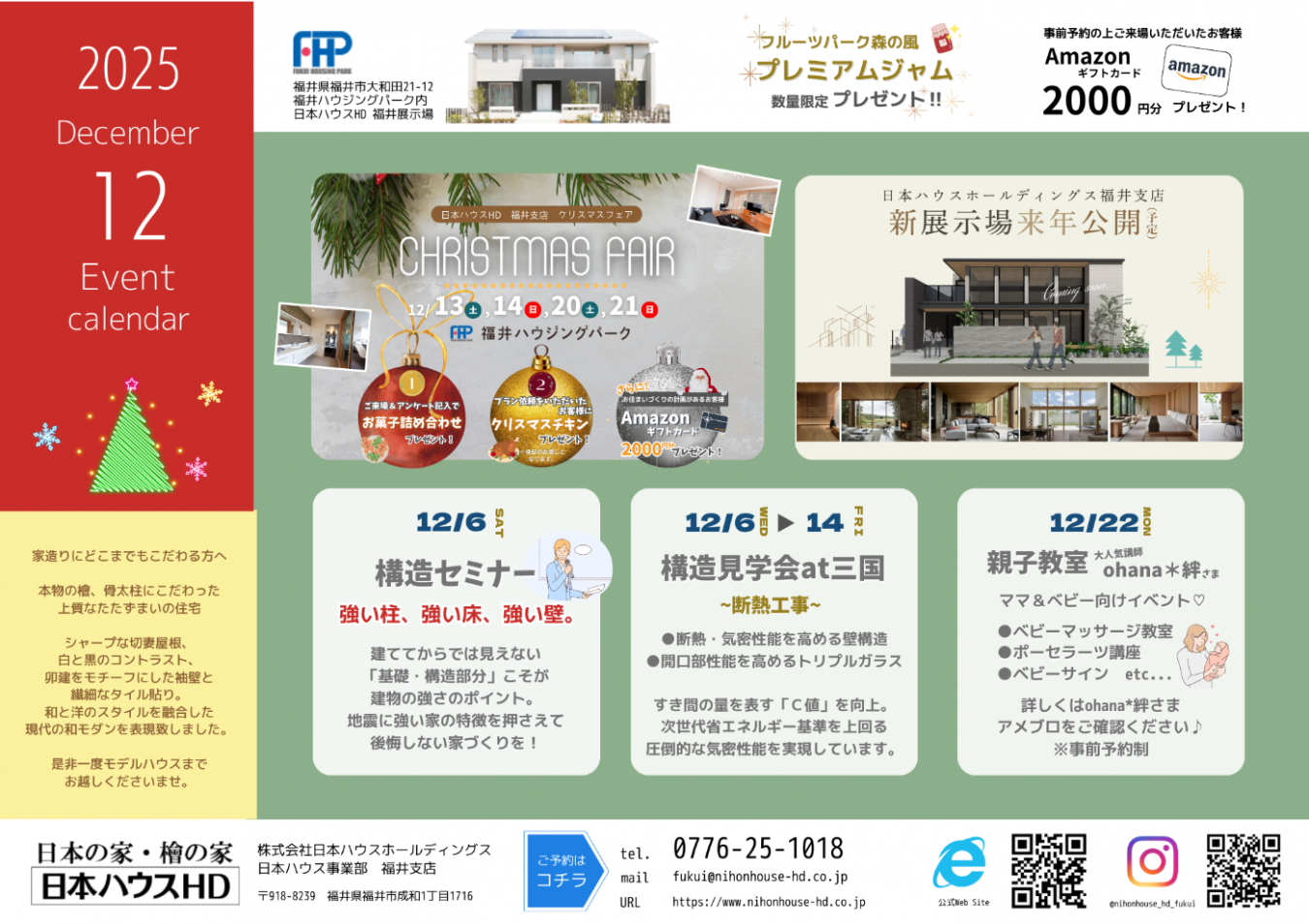 日本ハウスHD福井支店では、今年もクリスマスフェアを開催します。