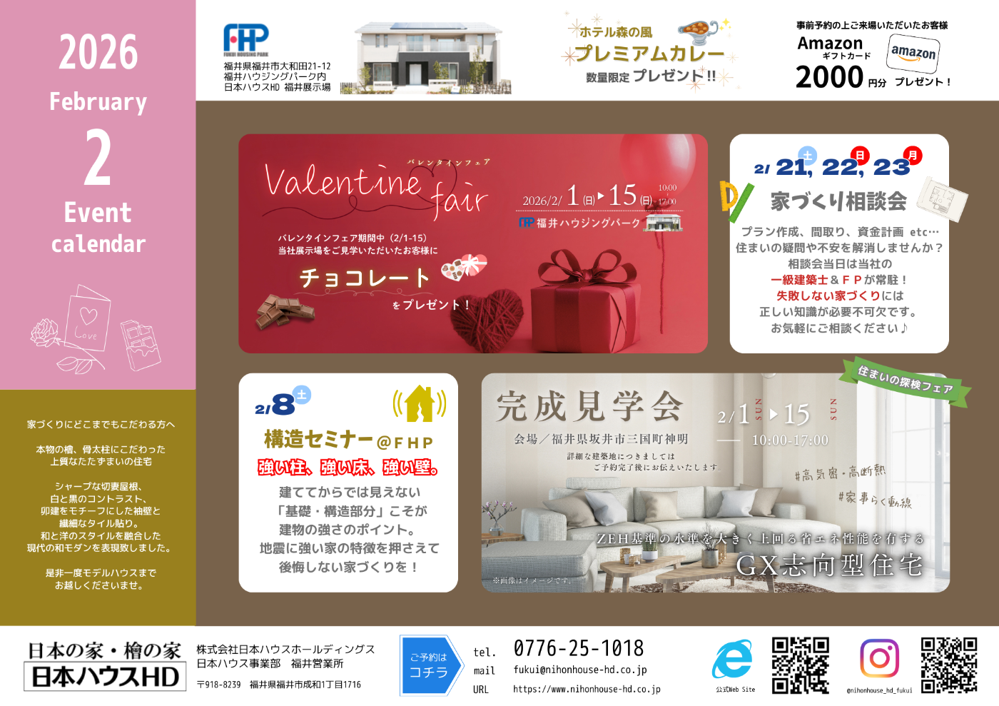 日本ハウスHD福井支店では、2月もご来場特典やイベントをご用意しています。