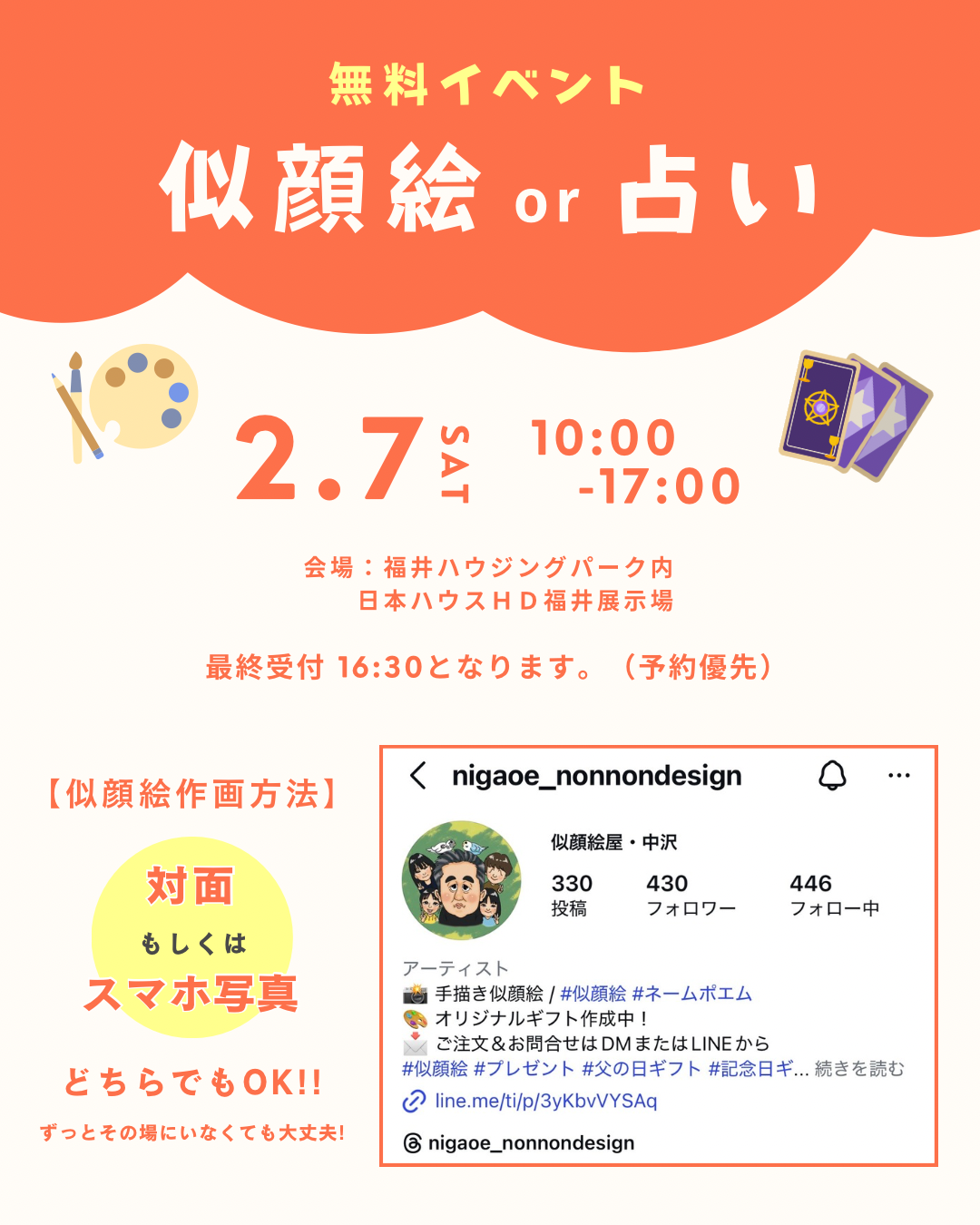 【無料】似顔絵orタロット占いイベント開催!