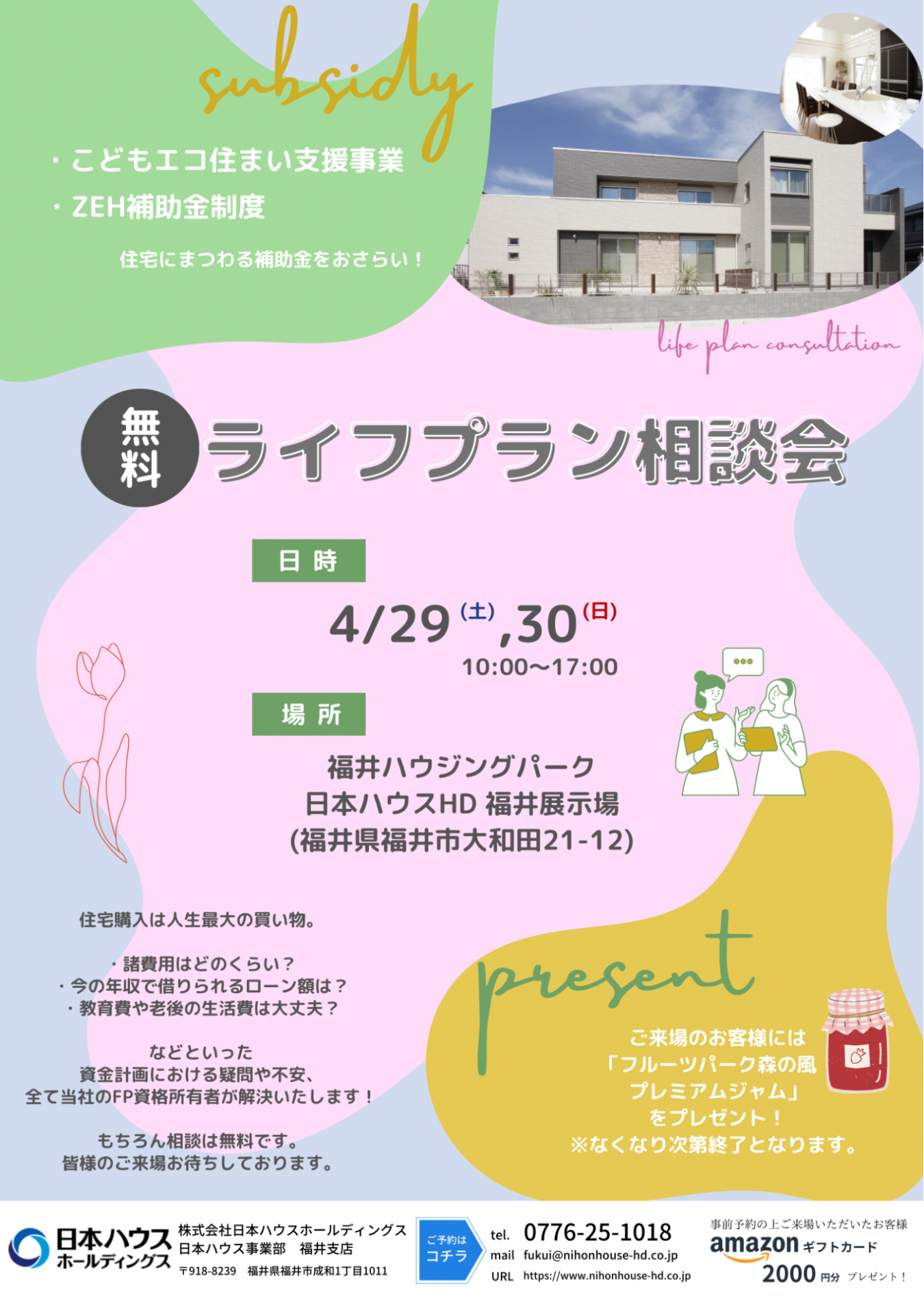 日本ハウスHD福井支店までお電話くださいませ。(TEL 0776-25-1018)