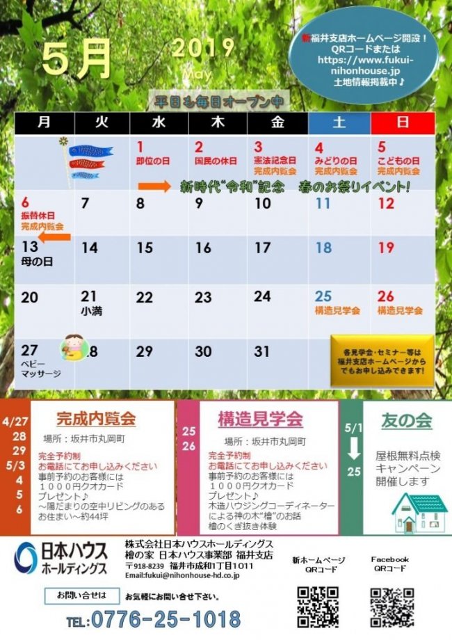 5月の日本ハウスホールディングス福井ハウジングパーク展示場の