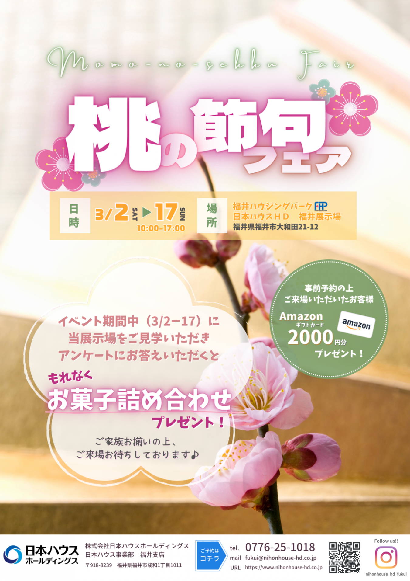 【3/16,17で終了】桃の節句フェア開催!お菓子&アマギフプレゼント⭐︎
