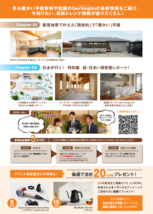 豪雪地帯で叶えた『開放的』で『暖かい』平屋