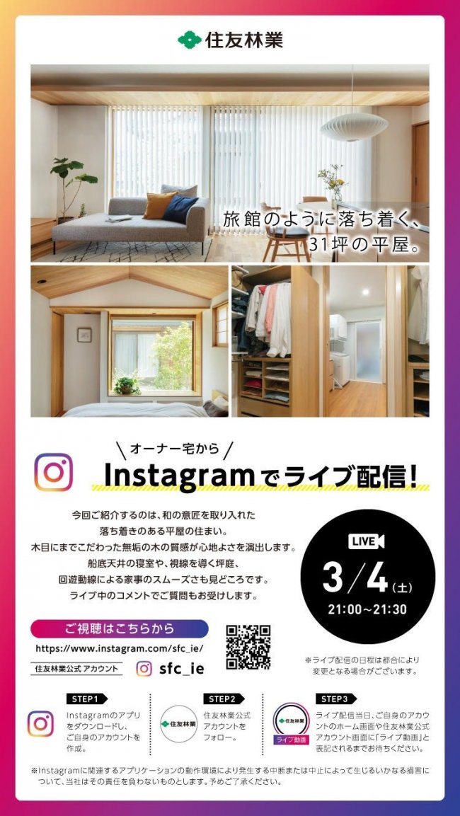 【3/4(土) 21:00~21:30】 インスタグラムでライブ配信!