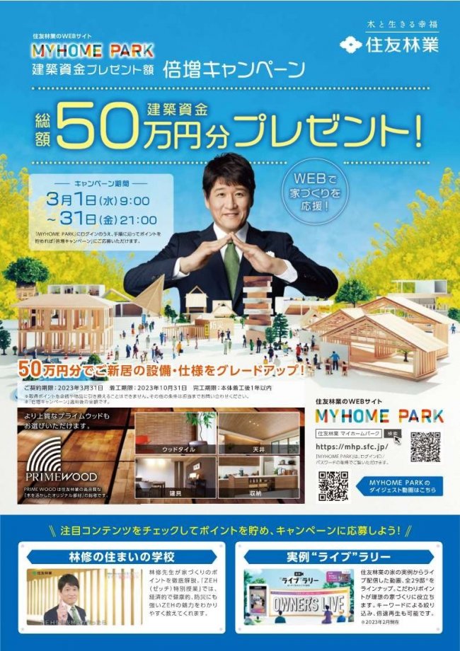 【3/1(水) ~3/31(金) 】 建築資金プレゼント額 倍増キャンペーン!